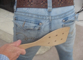 This week at www.amateurspankings.com, Arianna finds out what happens when you don’t get your bills paid on time. As punishment for not paying her phone bill, Arianna has to bend over, place her hands on the fireplace and take a spanking with a very large wooden spatula. She first feels the spatula through her very tight jeans then on her bare butt, which is turned a nice shade of red as a result of the spanking.